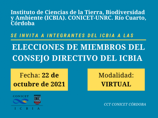 Por Disposición N° 008/2021 el Secretario de Ciencia y Técnica de la UNRC autorizó el acto eleccionario para conformar los miembros del Consejo Directivo del ICBIA-CONICET-UNRC